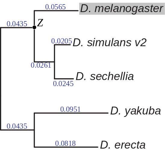 Divergence was inferred using four melanogaster-subgroup outgroup genomes: