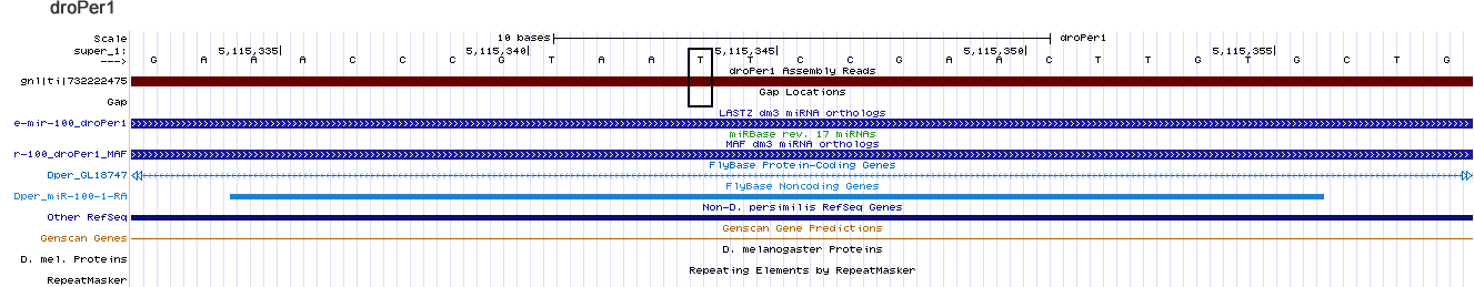 | droPer1 | super_1:5115309-5115438 + | ATACTTATATATGGACCATTAACAGAAACCCGTAATTCCGAACTTGTGCTGTTTTATATCTGTTACAAGACCGGCATTATGGGAGTCTGTCAATGCAAACAACT-GGTTTTTGG-CAACAAAATTT---------------------ATCACA |