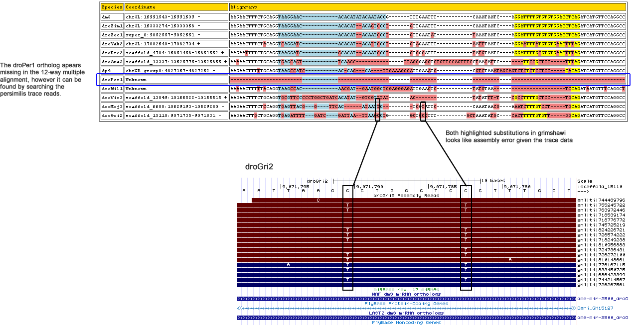 The reported D. persimilis ortholog reported in the 12-way alignment is wrong as shown above. Here is the correct ortholog found from the persimilis trace reads.