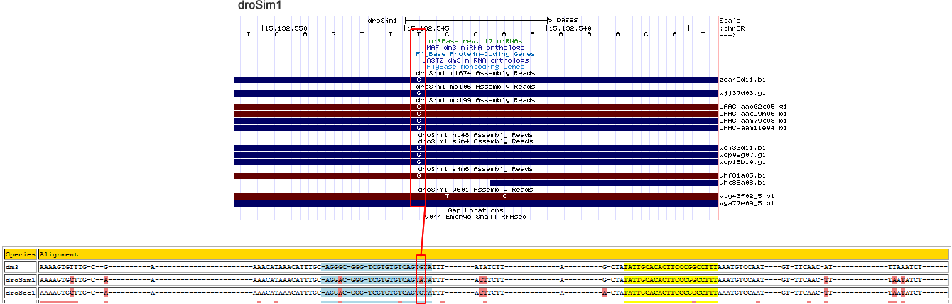 | dm3 | chr2R:16471242-16471360 - | AAAAGTGTTT------GC----G-----------------------AAAACATAAACATTTGCAGGGC-GGGTCGTGTGTCAGTGTATTTAT-------------ATCT-TAGC----------TATATTGCACACTTCCCGGCCTTTAAATGTCCA---ATGTTTCAACATT-------------TAAATCT----- |