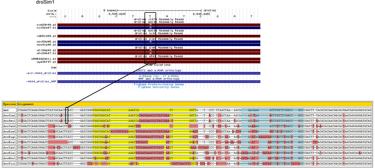 | dm3 | chr3L:9137677-9137812 + | CCAGACTCAGACGGACTTA----TCGCAA----CTTATCGAT------CGGGTGGCGGATATA----------GATCA-----------------TTGGTT---------------------------------------------------------------------------------------------------------------ATCCCTTAATTAAAGC--------AAACAAGATTTGTTTCGGCCGCCC--GATTTTACATACAACGAC-----------------ACGAATAGCAGG-----------------------------ATAT-AG |