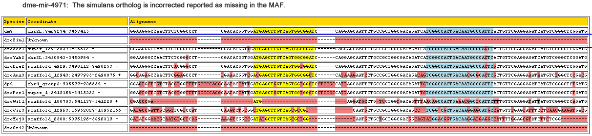 | dm3 | chr2L:3463274-3463415 - | GGAAG-GGCCAACTTCT---CGGCCCT--------CGACACGGTGGATGAGCTTGTCAGTGGCGGATC------CAGGAGCAATTCTGCCGC-------TGGCGACAG--ATCATCGGCCA--CTGACAATGC----------------------CCATTCACTGTTCGAGGAGATCATGTCGG--------GCTCGGATG |