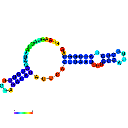 | droSim1 | chr2R:5362602-5362688 + | AAGTTCCTCATCTATGTAAATA-TCTAAA-------------------GTTGAACTTGGCCAACG-------------------------------GCAAGTCACAGCTTTTTGTGTTTACAGGAGAACGAGTACTTC |